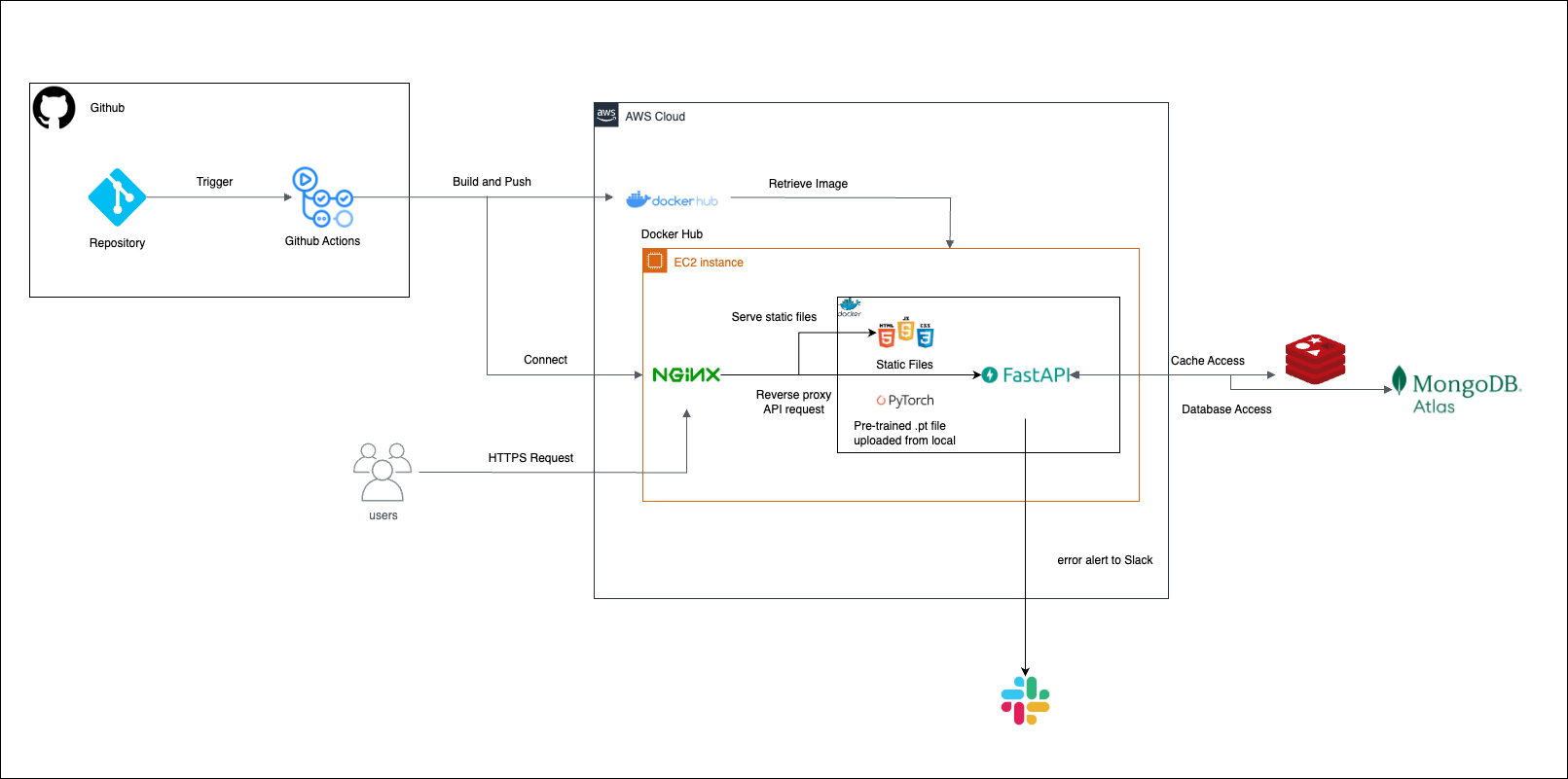 - 기술스택: Docker, GitHub Actions, AWS, FastAPI, MongoDB, Redis, Kakao Login API